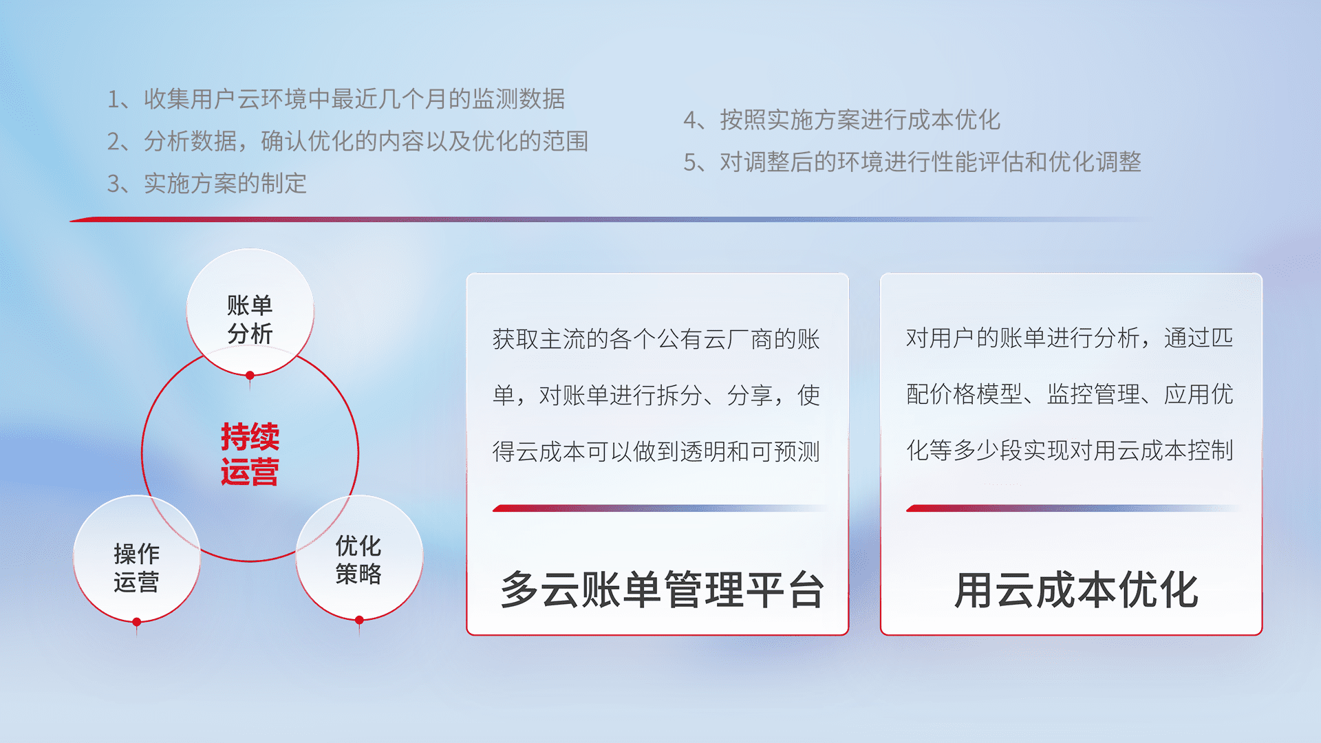 监控业务系统资源开销,,,对资源的消耗精确计量,,实现费用的透明化管理,,,不断提升资源使用率,,,,调整资源购买方式,,,降低资源费用成本,,,,用云成本可预测、、、用云费用可优化,,,,云资源配额有据可依。。